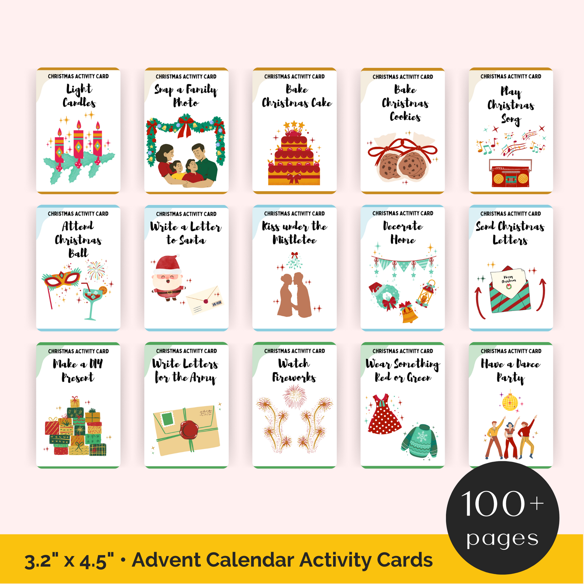 These 128 Christmas Advent Calendar Cards will help you to easily create an in demand product for this Christmas season. Customize in Canva.