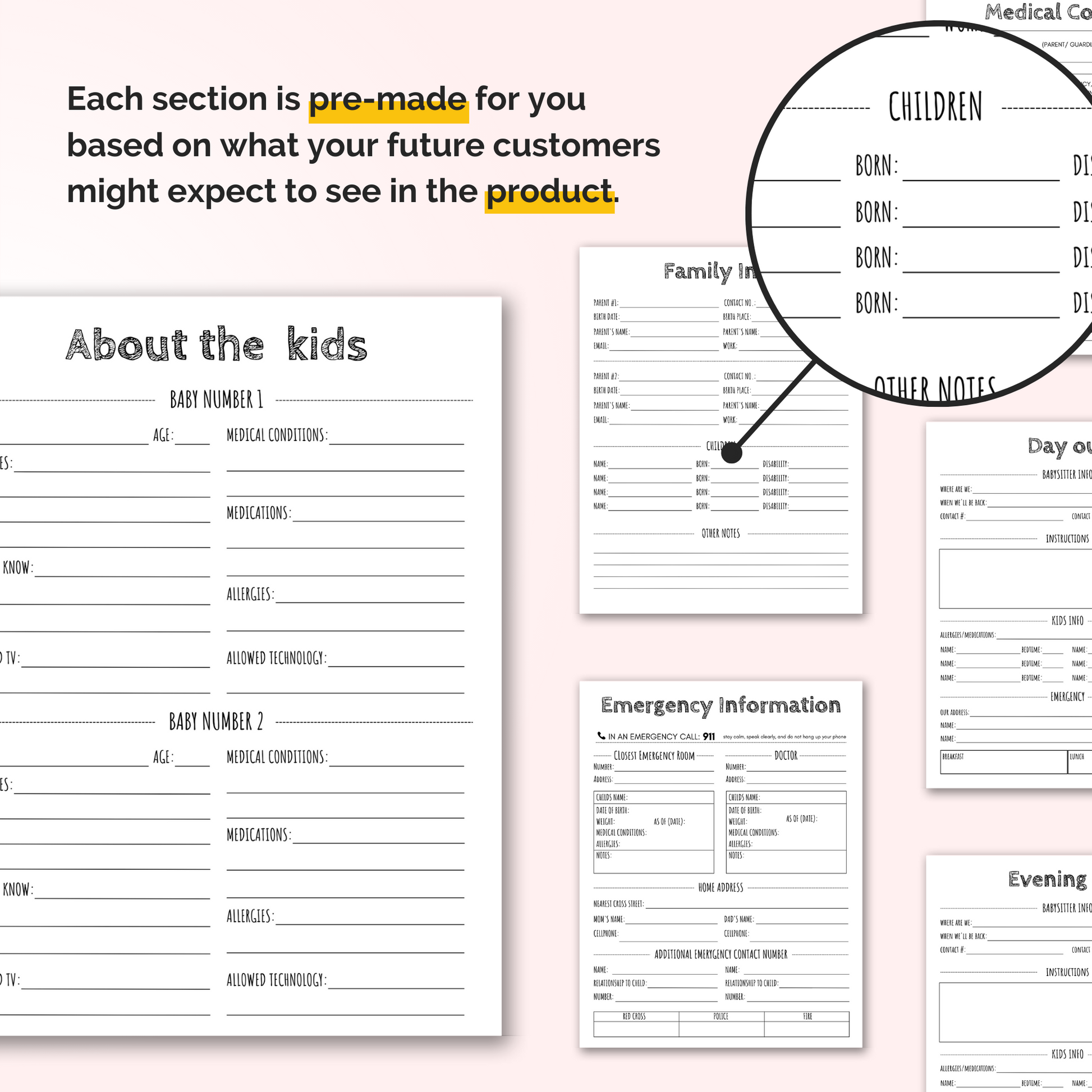 These Babysitter Planner Canva templates will help you to easily create an in demand product for your e-commerce shop. Customize in Canva.