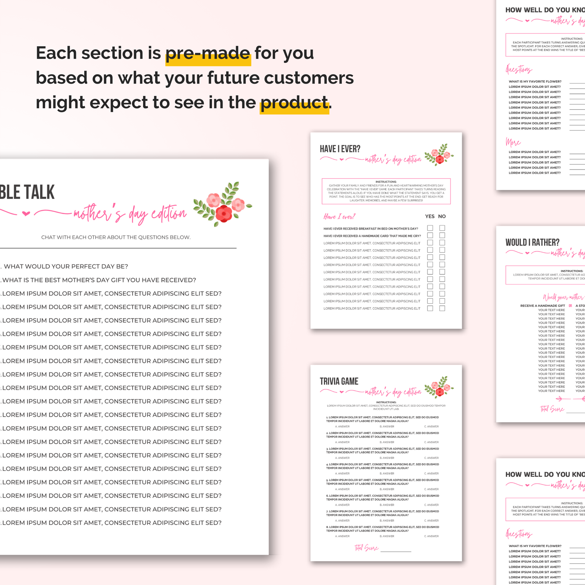 This Mother's Day game bundle and mockup templates will help you to easily create an in demand product for your e-commerce shop. Customize in Canva.