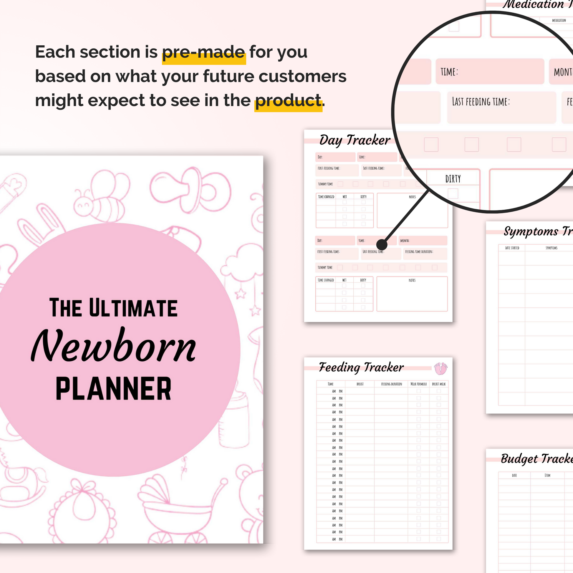 This 20 page Newborn Girl Planner template will help you to easily create an in demand product for your e-commerce shop. Customize in Canva.