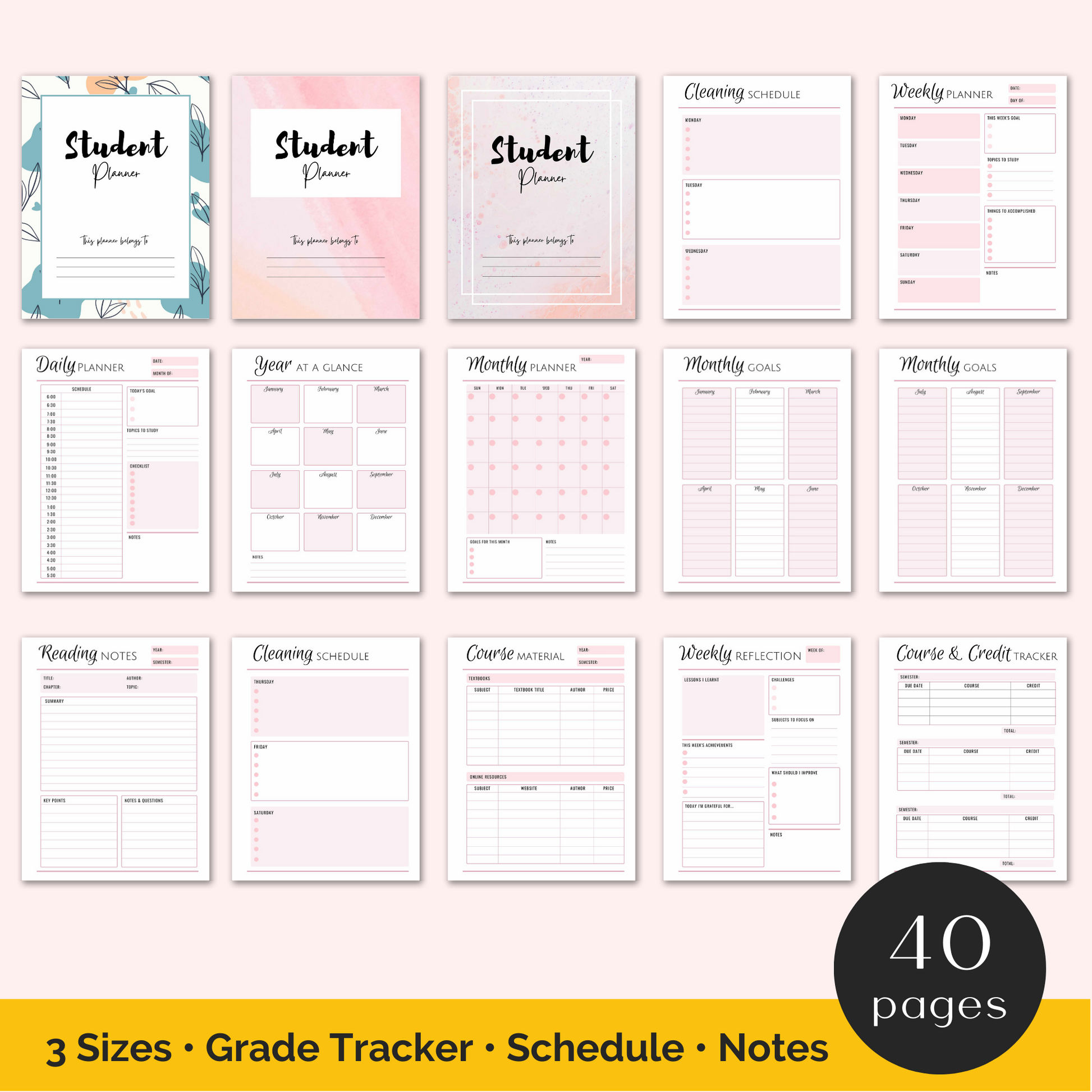 This 40 page Pink Student Planner template will help you to easily create an in demand product for your e-commerce shop. Customize in Canva.