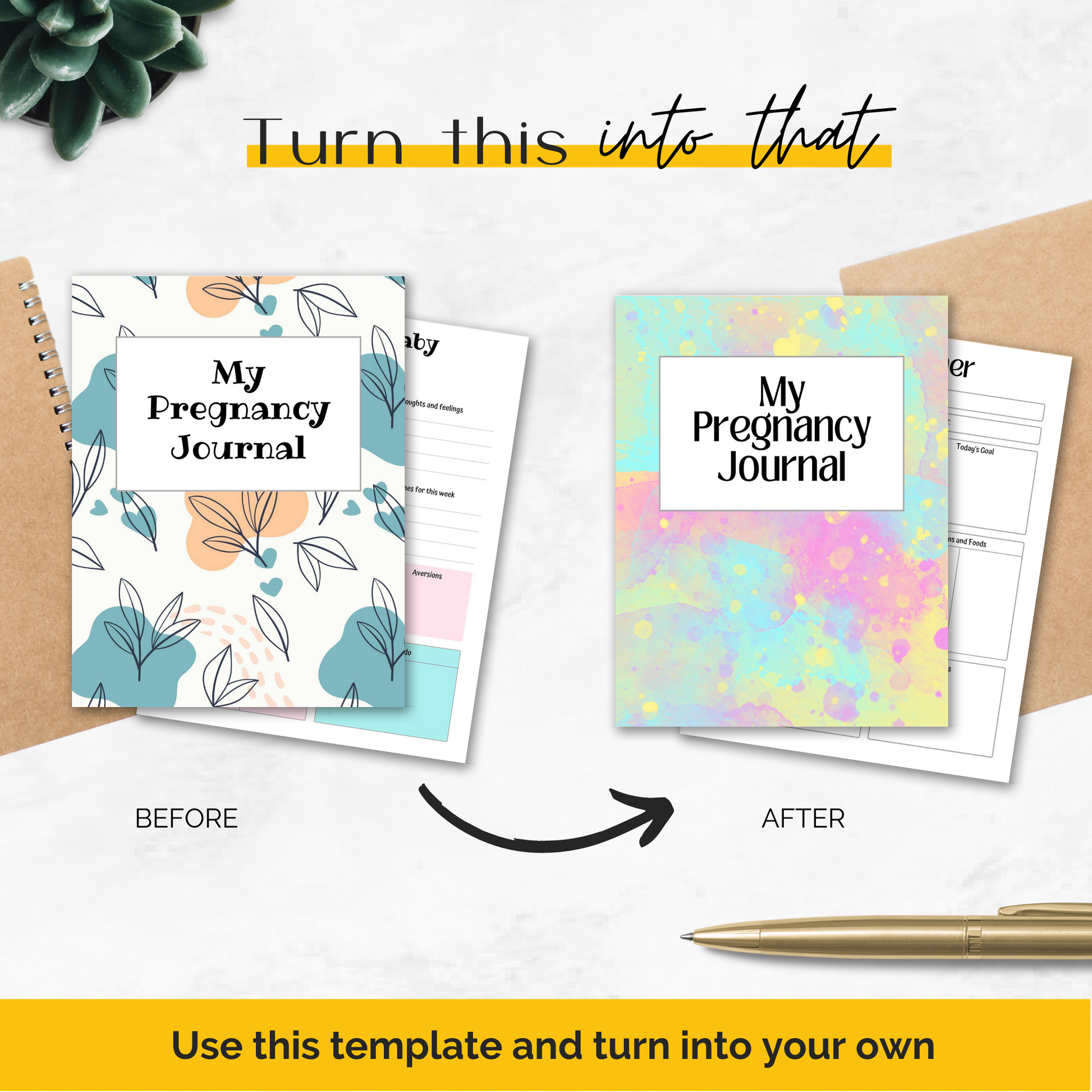 This 75 page Pregnancy Planner template will help you to easily create an in demand product for your e-commerce shop. Customize in Canva.