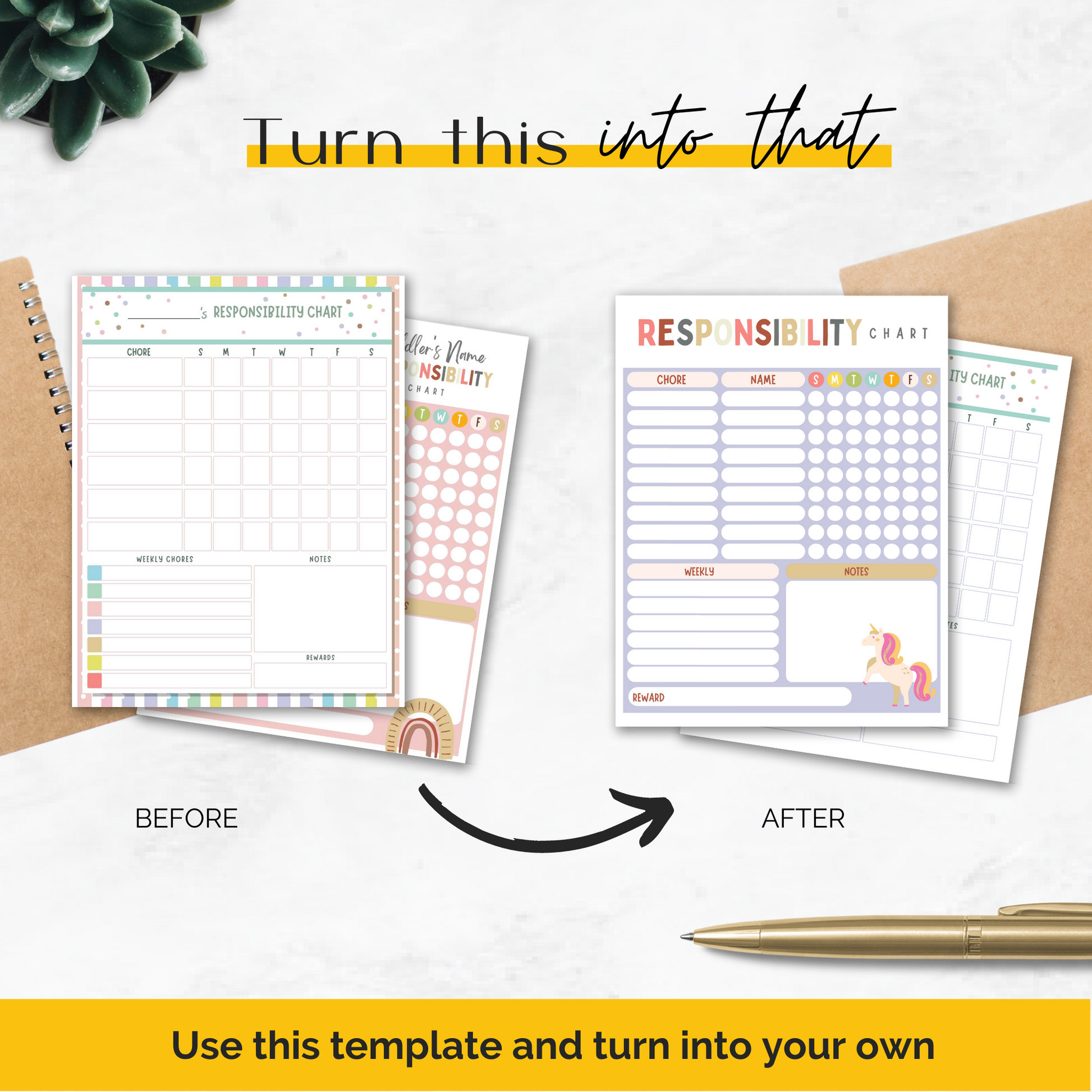This 10 page Responsibility Chart template bundle will help you to easily create an in demand product for your e-commerce shop. Customize in Canva.