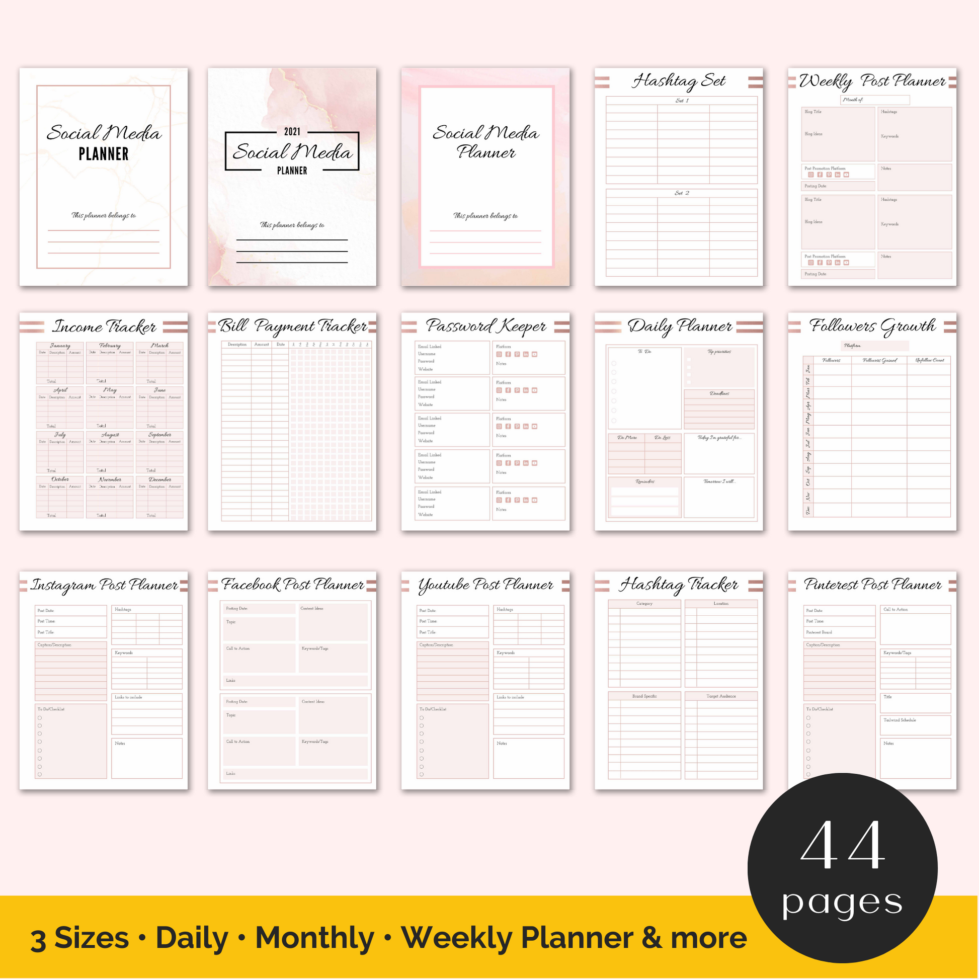 This 44 page Social Media Planner template will help you to easily create an in demand product for your e-commerce shop. Customize in Canva.