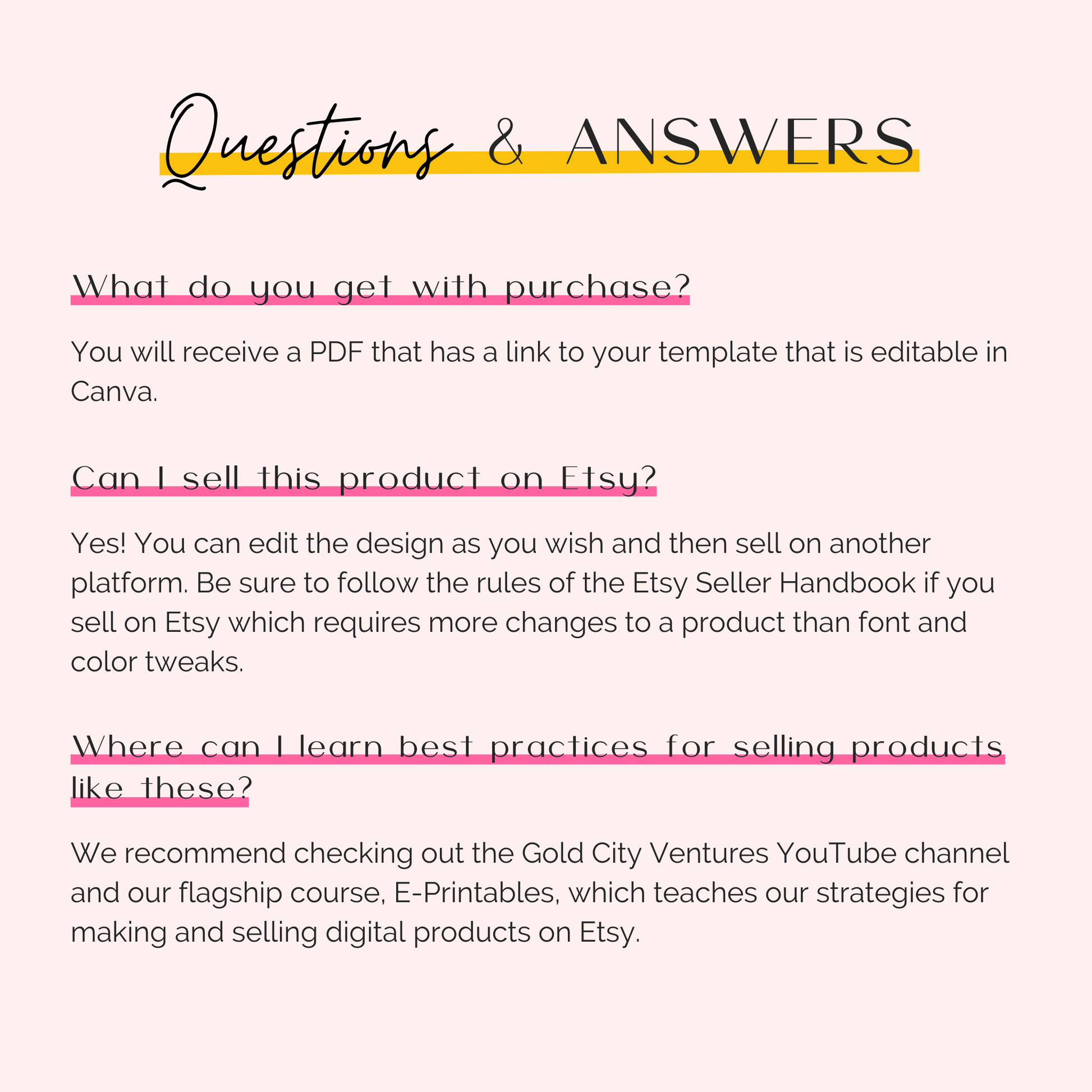 This template was created for business owners who want to edit and resell digital products on sites such as Etsy, Shopify, or their own blogs. It comes with the commercial use license listed below.